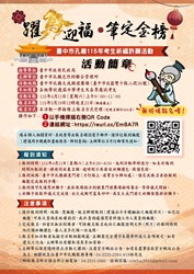 孔廟考生祈福1 活動日期:115年4月11日(星期六) 活動時間:上午9時至11時 活動地點:臺中市孔廟大成殿前廣場 (臺中市北區雙十路二段30號) 報名日期:自115年3月19日中午12時起至3月31日下午5時止(額滿截止)